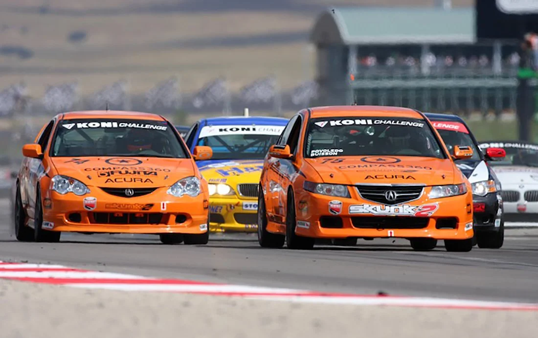 Qualifying rewarded the team's efforts, with all three cars qualifying in the top-eight for the first time this season. Povoledo placed the #75 TSX in fourth, with Thomson right behind in fifth, while Tuaty put the #74 RSX in eighth. "This is a really challenging track," noted Thomson. "It demands utmost attention from the driver, and with 23 corners over four-and-a-half miles, there's little chance of catching your breath. The whole team really did a great job getting the best performance out of the cars." The start of the race was really exciting, with the field racing down the long straight into the first corner three cars wide. Povoledo and Thomson both made good starts, moving up to third and fourth respectively. This, despite Povoledo being tagged from behind, which resulted in his rear bumper flapping about on the ground for the next two laps. "I felt the hit, and just managed to keep my line, getting the inside line into corner two ahead of Karl," said Povoledo. "I was worried I'd get a black flag, but the bumper fell off and I settled into third spot behind the #93 Subaru and the #01 Cobalt."